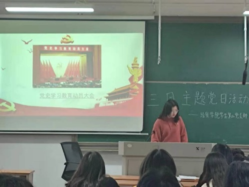 首先,支部书记曾倩老师为大家讲解了开展党史学习教育的背景及学习党史的重要性,希望党员同志在党史的学习教育过程中不忘初心、不断汲取力量,勇于开拓新局面。