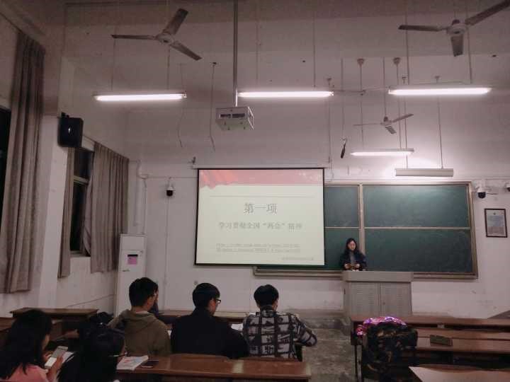 党员同志首先观看了有关“两会”的视频,并向全体预备党员介绍“两会”的相关内容。每位预备党员就“两会中最令你印象深刻的提议是什么?”“通过两会精神说说你的感想和体会”以及“结合两会内容与学生党支部五化建设标准谈谈如何使活动形式更丰富”等问题轮流上台发表自己的看法,通过学习两会精神并且结合自身情况,提高对党和国家的认识。