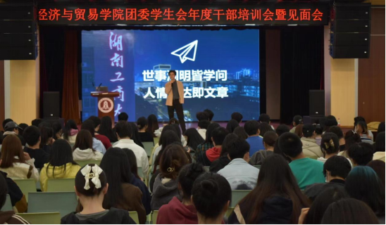 11月24日晚,经济与贸易学院在北校区风采中心成功举办团委学生会年度干部培训会暨见面会。在培训会上,学院团委书记李路远老师对团学会的工作表示高度肯定,并对团学会成员的发展寄予了深切期望,他表示团学会是学生自我管理、自我教育、自我服务的重要组织,对于提高学生的综合素质、促进学生的全面发展具有重要意义。李路远老师强调了团队合作的重要性,鼓励干事们要相互支持,共同面对挑战,实现团队目标,并就如何有效地与同学们沟通,包括倾听、表达、反馈等技巧与团学干事们互动交流。干事们纷纷表示,这次培训让他们受益匪浅,不仅提升了自己的综合能力,也更加明确了自己在团学会中的责任和使命。