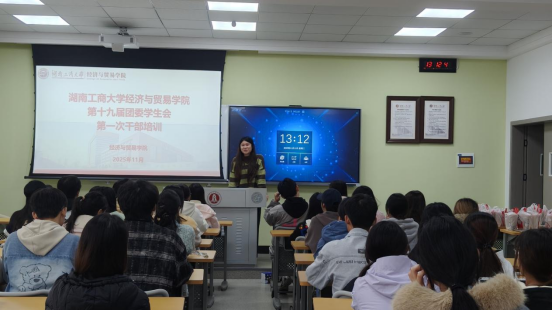 11月11日,湖南工商大学经济与贸易学院第十九届团委学生会第一次学生干部培训顺利举行。学院团委书记傅凌志老师围绕工作方法优化、团队建设强化、年度目标推进三大核心问题进行工作部署,明确以“主动沟通、闭环管理”为核心工作原则,锚定明年学校五四评优“红旗团委”称号的冲刺目标。