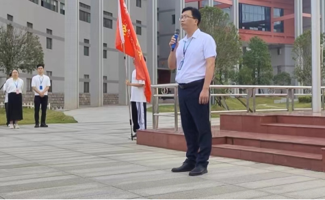升旗仪式后,党委书记杨水根教授进行国旗下讲话。他向大家诠释了明确目标的三层含义:第一是学习目标是什么?第二是自身的位置在哪里?第三是两者之间有多大的差距?最后杨水根书记希望同学们明确自己的目标,在新学期中积极进取、昂扬奋斗,以更加饱满的热情、更加坚定的信念,为实现新学期的目标而不懈努力,努力成为前沿视野新、家国情怀深、专业素养高、创新能力强、仁爱之心浓的优秀大学生。