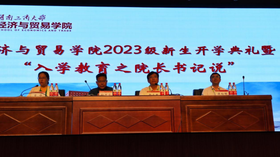 9月9日,经济与贸易学院在北校区弘毅报告厅举行2023级新生开学典礼暨“入学教育之院长书记说”。全体院领导、各系(办)主任、支部书记、新生辅导员、班主任、教师代表、2023级全体新生参加。
