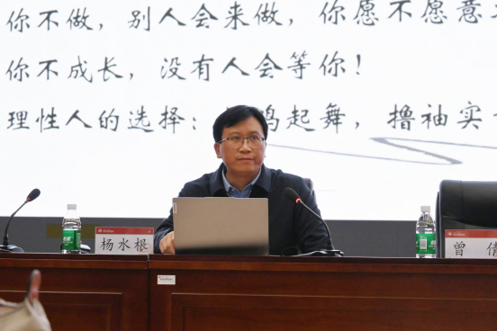 杨水根书记还针对大学生在学习和生活中常见的问题进行了剖析,指出部分同学在进入大学后出现了懈怠情绪,如不愿早起、学习缺乏主动性等。他倡议同学们要从被动转变为主动自律,心态上要从过去的成绩中走出来,重新开始,行动上要将想法付诸实践,思维上从单一局限于专业转变为多元,多去了解其他院系的课程和知识,以提升自己的综合素质和竞争力。