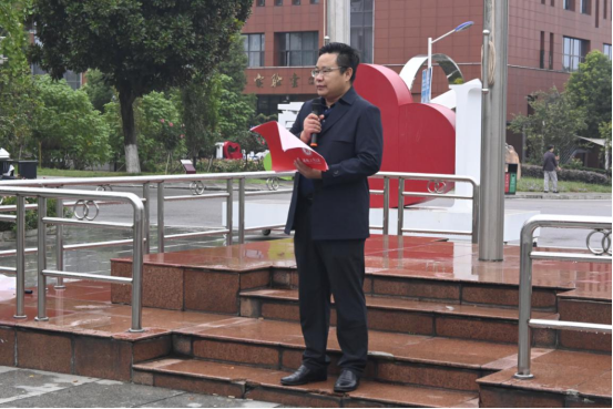 接着,向国成院长国旗下讲话。他回顾了新中国成立76年来从积贫积弱到繁荣富强的辉煌历程,强调了贯彻落实2025年“全民国防教育月”部署要求、弘扬爱国主义主旋律的重要意义。向院长结合学校获批推荐优秀应届本科毕业生免试攻读硕士学位研究生资格的喜讯,鼓励同学们珍惜时代机遇与大学时光,将个人成长融入国家发展大局,以真才实学践行“强国有我”的誓言。同时他表示,学院将以学校获得推免资格为契机,搭建更广阔平台、提供更优质资源,助力学子逐梦前行。